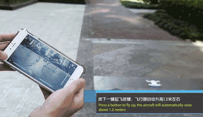 按下一键起飞按键,飞行器自动升高1.2米左右。